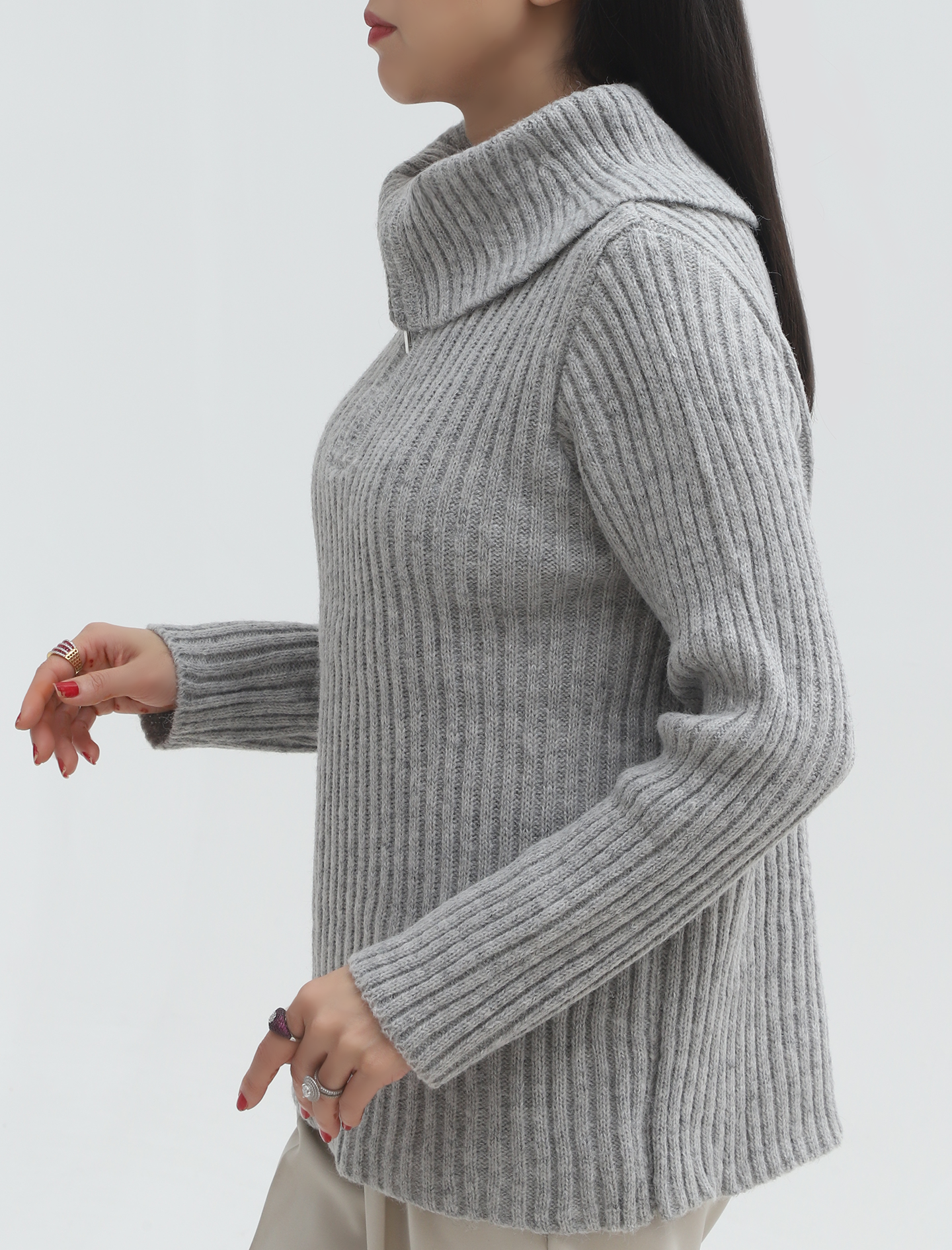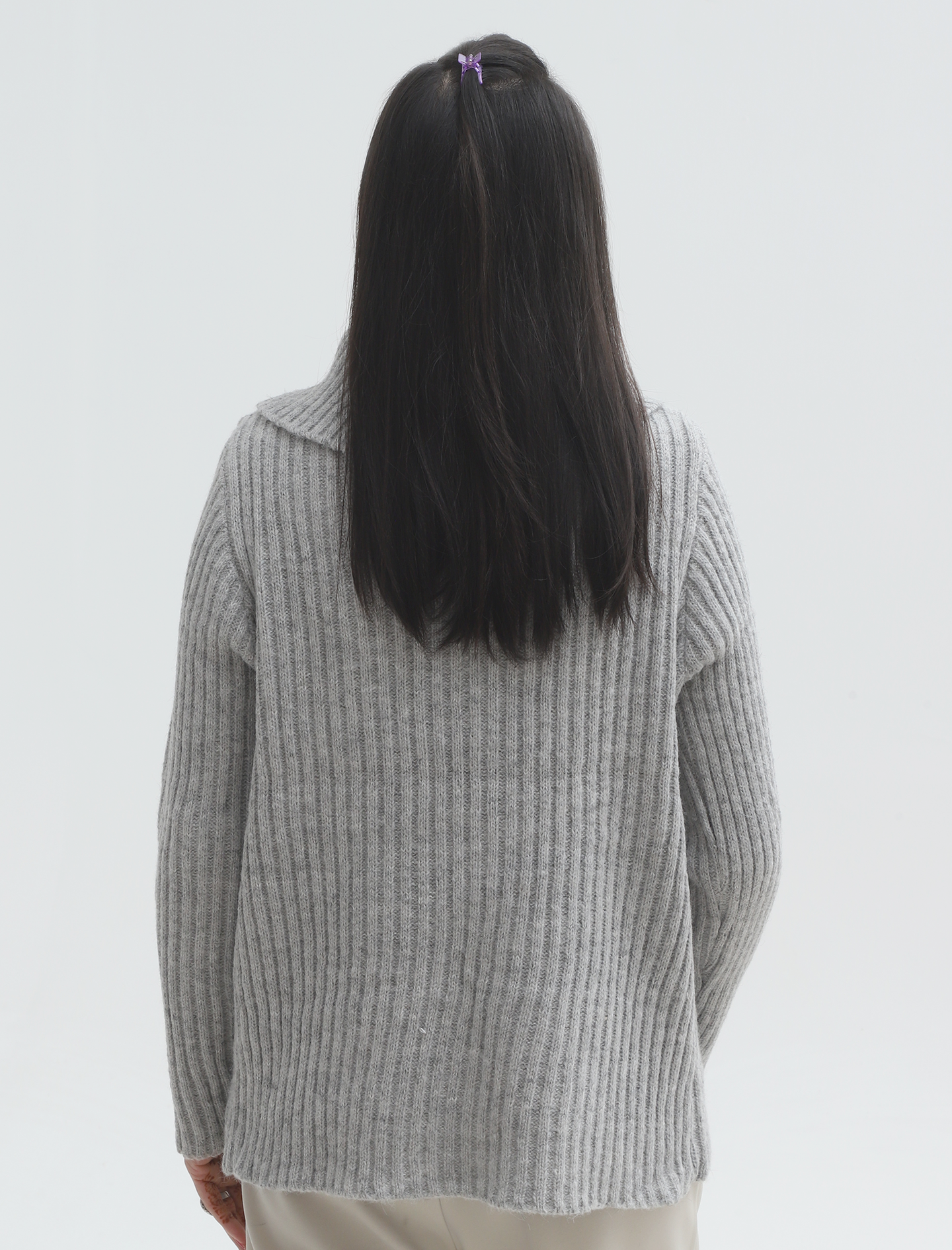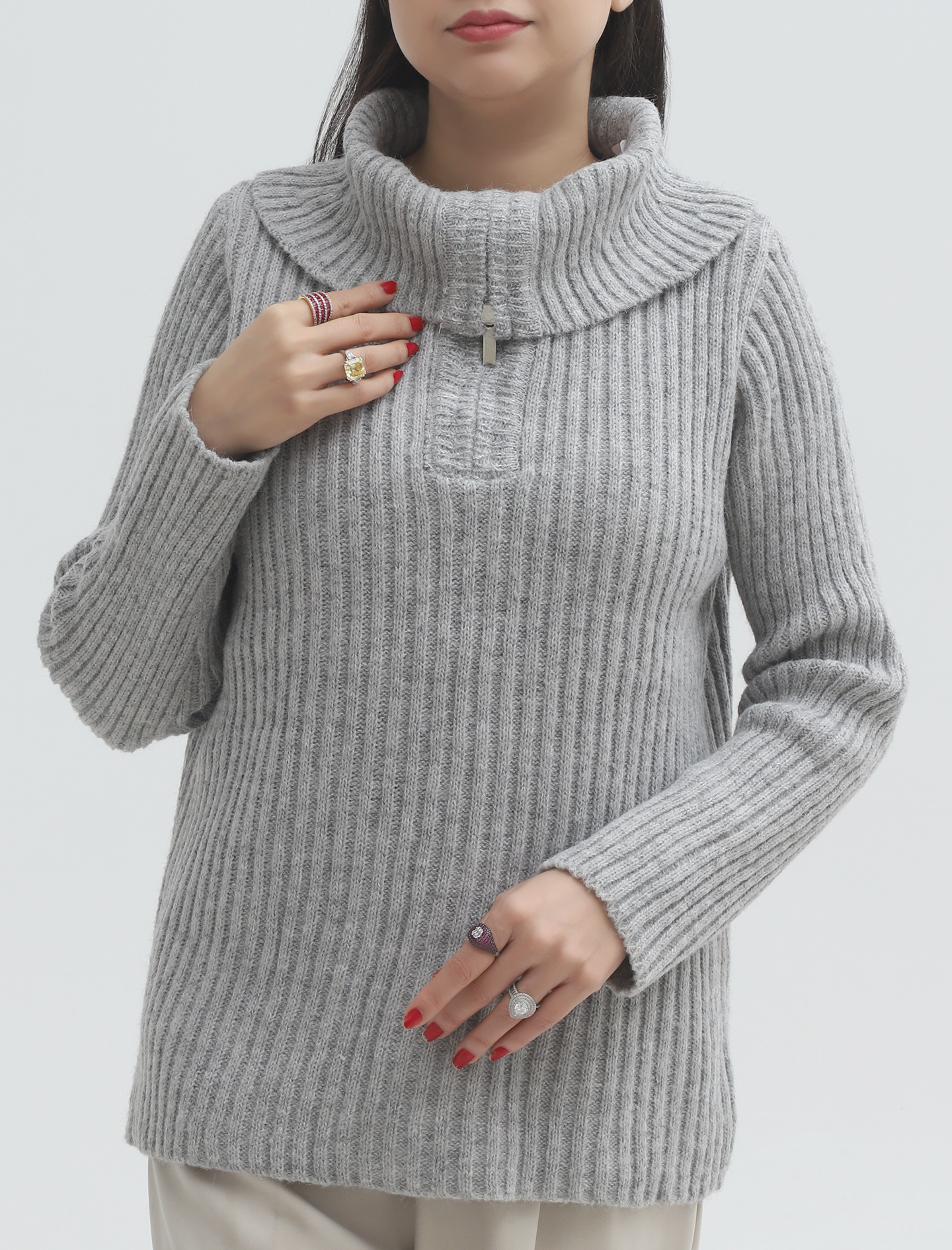 L Grey Women Zip Sweater